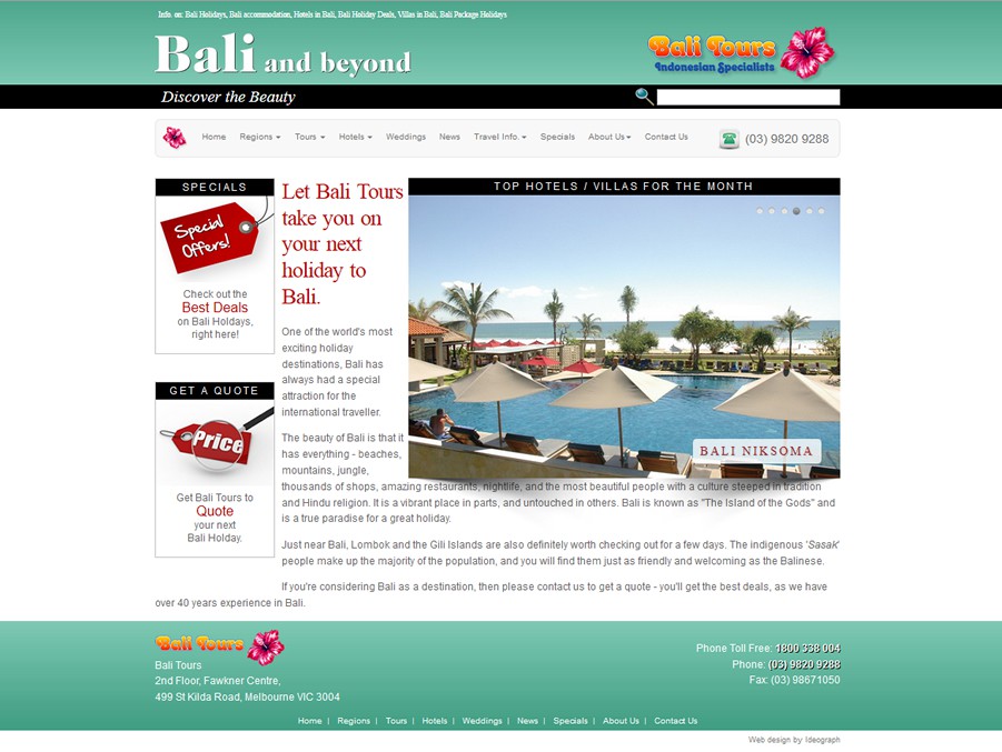 All our websites are designed and coded on our premises. We don't use "Build online" templates, and we don't use overseas web programmers.